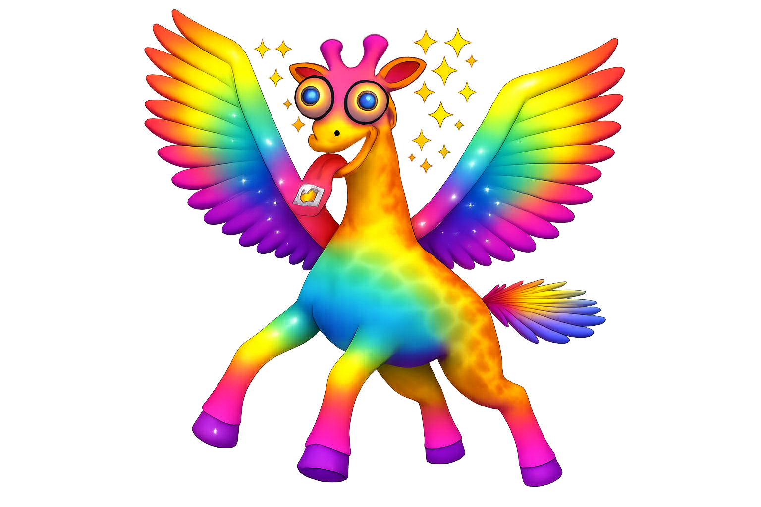 The Giraffe licked a whole sheet and started arguing with the fabric of spacetime. He sees in 47 colors now. One of them is called "spicy purple."